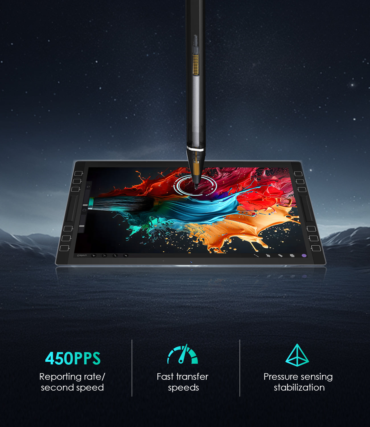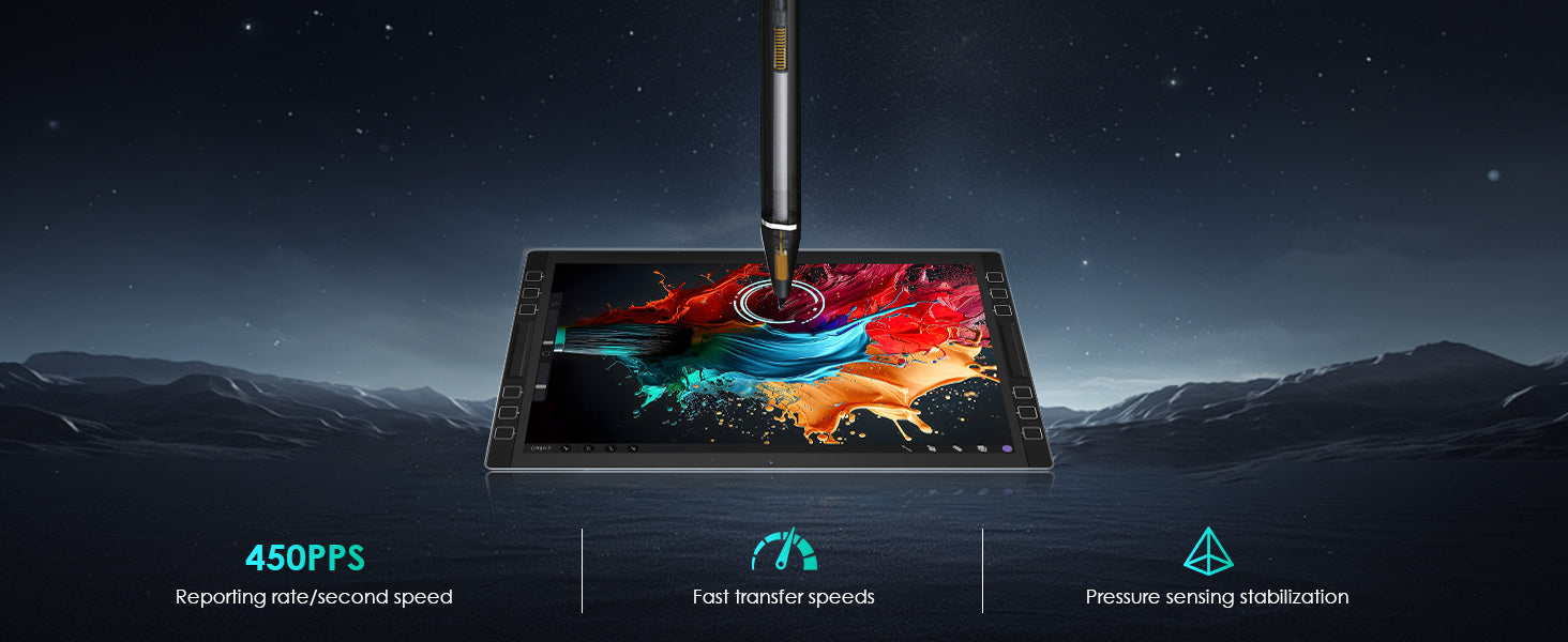 The reporting rate of LincStudio's pen reaches an astonishing 450PPS. A higher reporting rate means clearer rendering and a silkier painting experience. There is almost no gap between the pen and the screen, and the pen's response time is within 10 milliseconds.