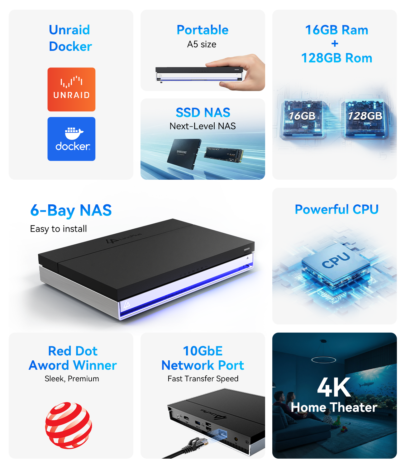 LincPlus LincStation N2 6-Bay NAS | 16GB RAM+128G ROM | Storage 6x8TB SSD (Diskless)