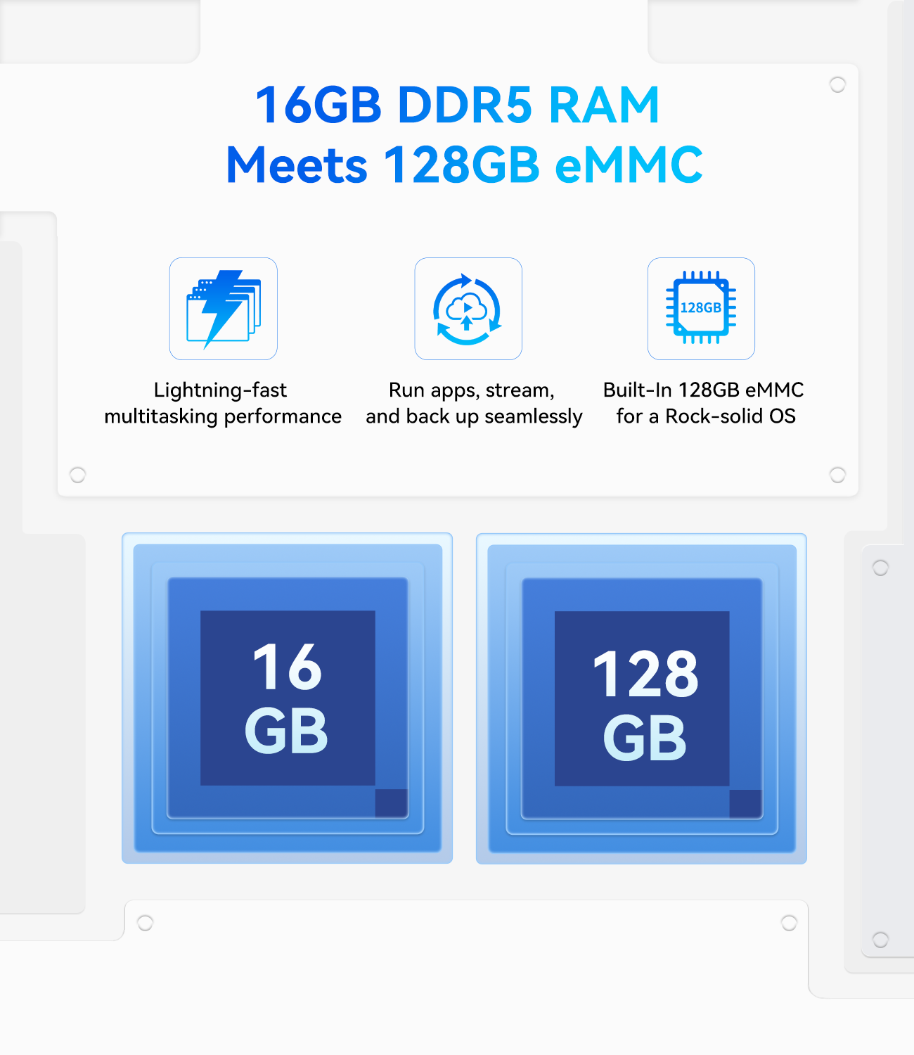 - Powerful 4-Core Performance – Intel Alder Lake-N N100 processor (4 cores, up to 3.4GHz) with 16GB LPDDR5 RAM delivers smooth 4K streaming, fast file transfers, and efficient multitasking for home and office use.